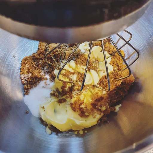 - Lisää suklaakuutiot voi-sokerivaahtoon. Sekoita.